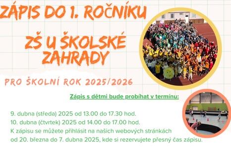 Rezervační systém k zápisu bude otevřen od 20. března 2025 do 7. dubna 2025.